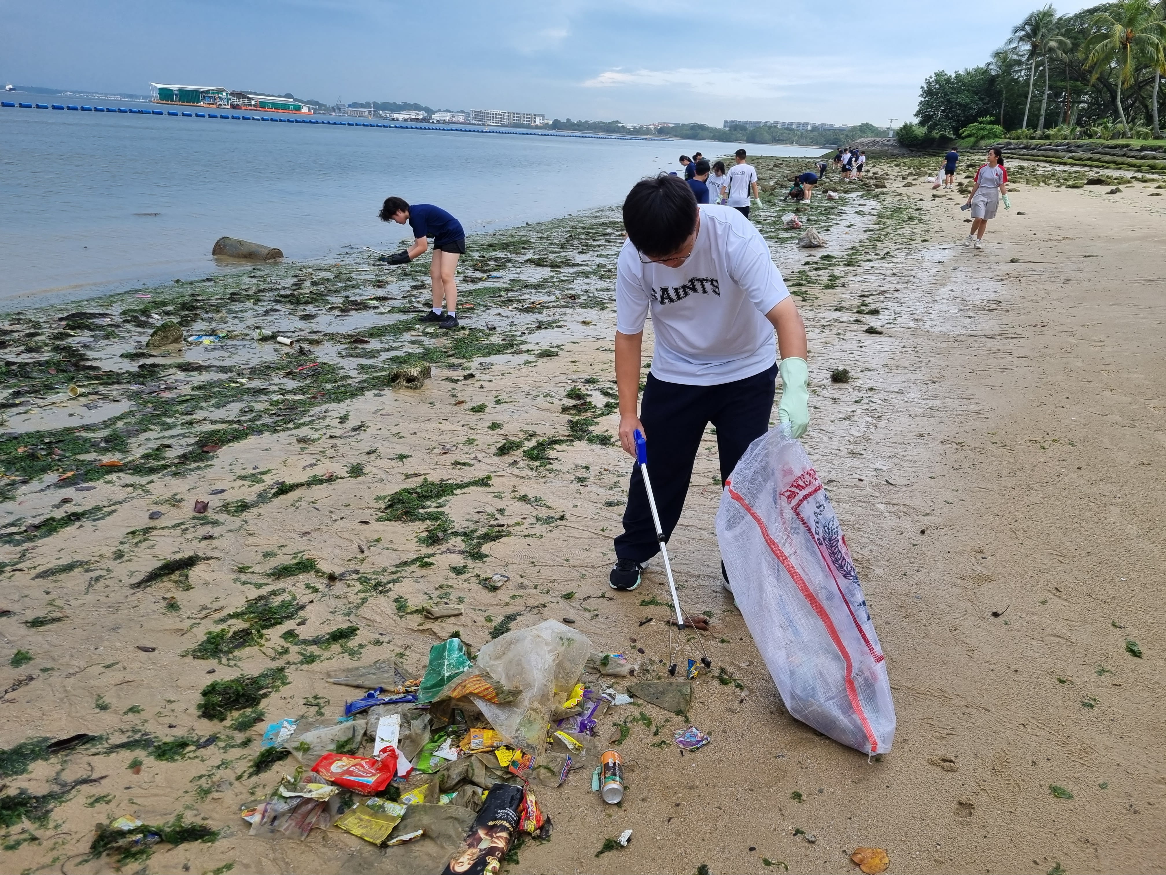 Litter picking at Pasir Ris Beach in collaboration with National Junior College