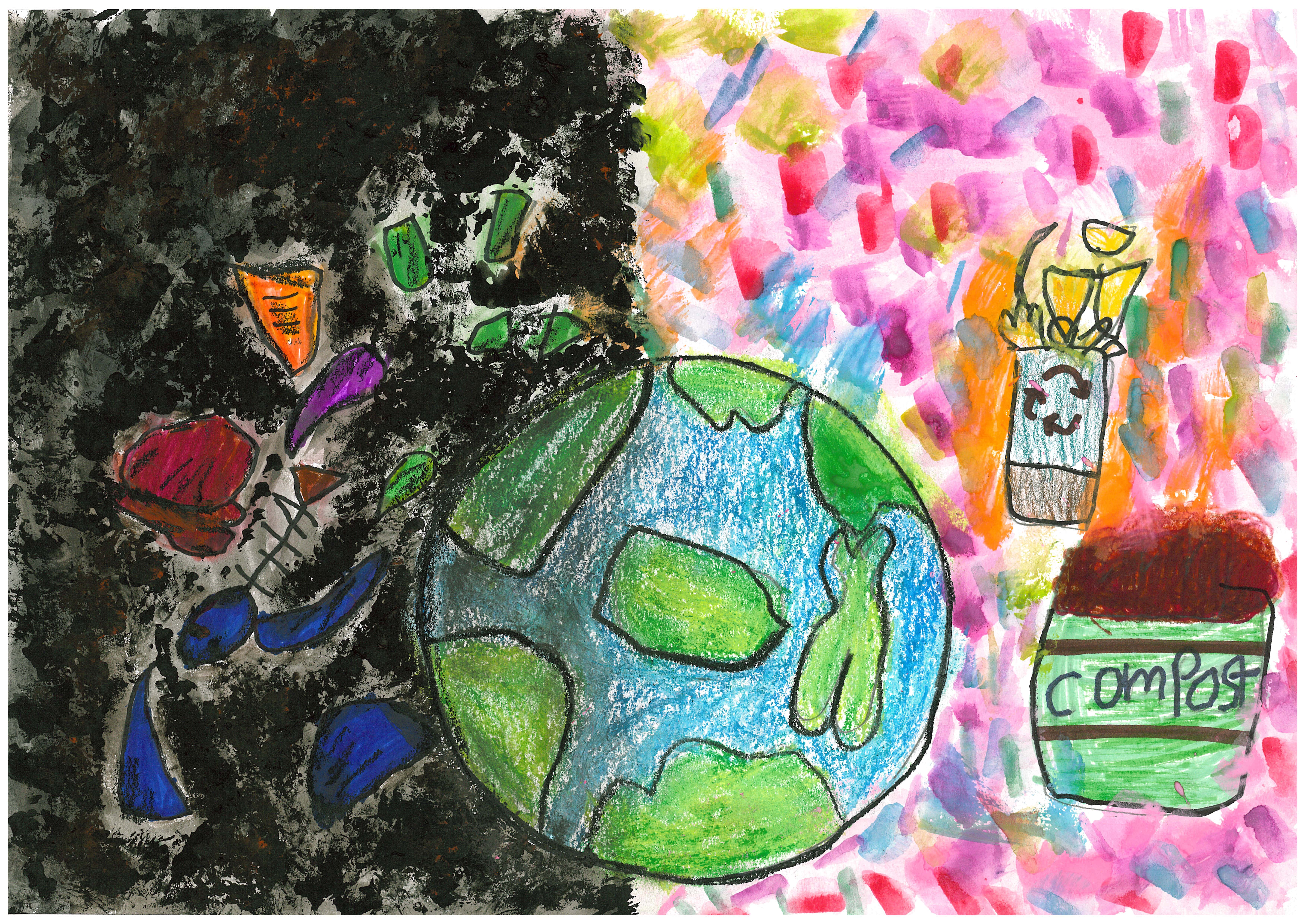 The theme for the art competition focused on waste reduction, exploring ways to avoid using disposable items and/or to reduce food waste. Participating students explored their own interpretations of the theme, creating unique art pieces that tell a story, share a message, or show solutions to inspire others to make a difference.
